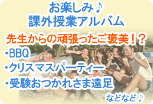 ただ、厳しいだけでは子供たちはついてきてくれないので、授業はおもしろく、子供たちとの会話を重要視する授業を心がけ、ときには花火やバーベキューを実施し、みんなで楽しめる企画を実施しています。そして、しっかりと努力をすれば結果がでる、努力して掴み取った喜びをこれからの日本を背負っていく子供たちに味わってもらうため、塾を開きました。 そして『この塾を卒業してよかった。』と子供たちに思ってもらえるよう、精一杯努力していきたいと思います。